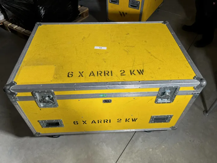 6x Arri 2kW Stufenlinse im Case, Funktion ungeprüft wie abgebildet, mit TV-Zapfen und Anschlussleitung