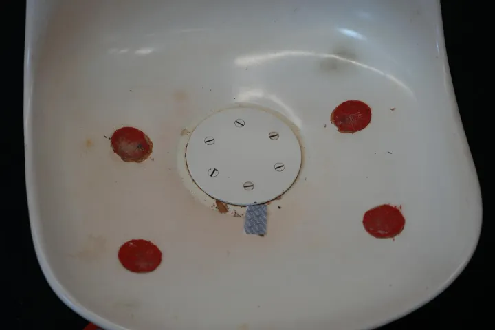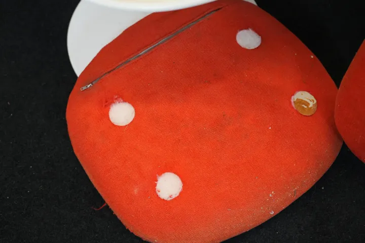 2X Knoll International Tulpi Chair mit rötlicher Polsterung aus Stoff | Funktionen: nicht drehbar | Maße: H: 80cm | B: 50cm | T: 56cm
