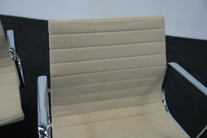 2X Vitra EA 107 - Hopsak / Beige | Marke: Vitra | Bezug: Hopsak | Farbe: Beige | Abmessungen: H: 83cm | SH: 40 cm | B: 58cm | T: 59cm
