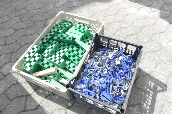Konvolut Montagekeile und Nivellierhilfen (2x Kiste mit Inhalt)