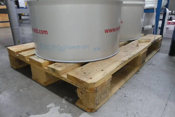 Hinweis: Die Fässer sind voll. Inhalt ist ungeprüft.