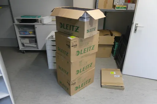 Schreibtisch, Bürostuhl, Rollcontainer, Sideboard, ohne Inhalt, ohne Technik